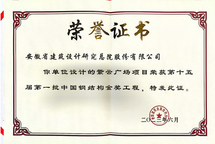 紫云广场项目是合肥市首个大型装配式钢结构公共建筑,曾被安徽省住房和城乡建设厅评为2019年装配式建筑示范项目。项目还先后获得了合肥市优质结构工程奖,安徽省土木建筑学会建筑结构创新奖一等奖,安徽省优秀勘察设计品质示范工程建筑工业化设计一等奖等。