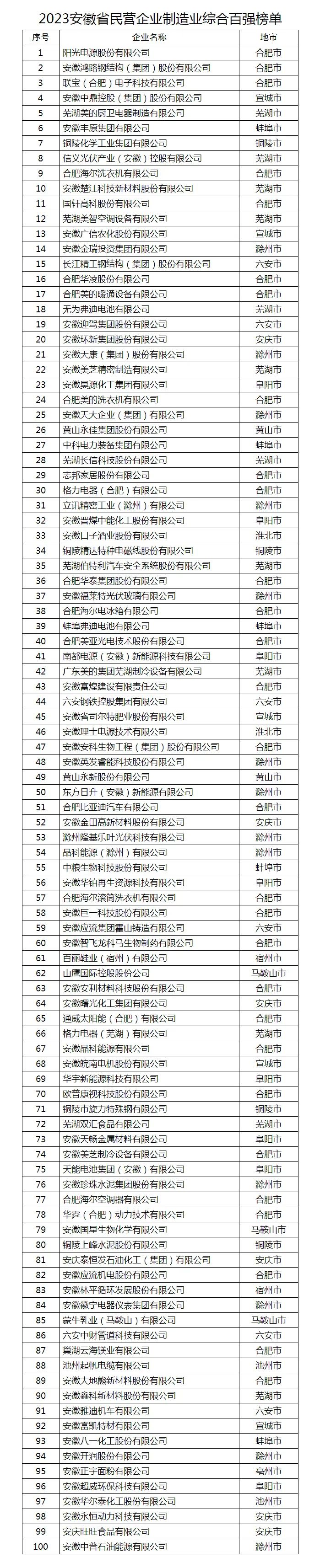 民营企业是市场经济的基石。11月22日,2023安徽省民营企业营收百强、2023安徽省民营企业制造业综合百强、2023安徽省民营企业服务百强等三项榜单同时发布(名单附后)。
