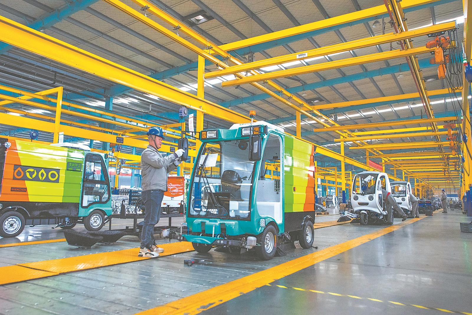 1月2日,芜湖市繁昌经济开发区爱瑞特公司生产车间里,工人在新能源电动清扫车生产流水线上组装作业。新年第一个工作日,繁昌经济开发区内各企业科学制定生产计划,开足马力,抢抓生产,力争实现“开门红”。通讯员 肖本祥 摄