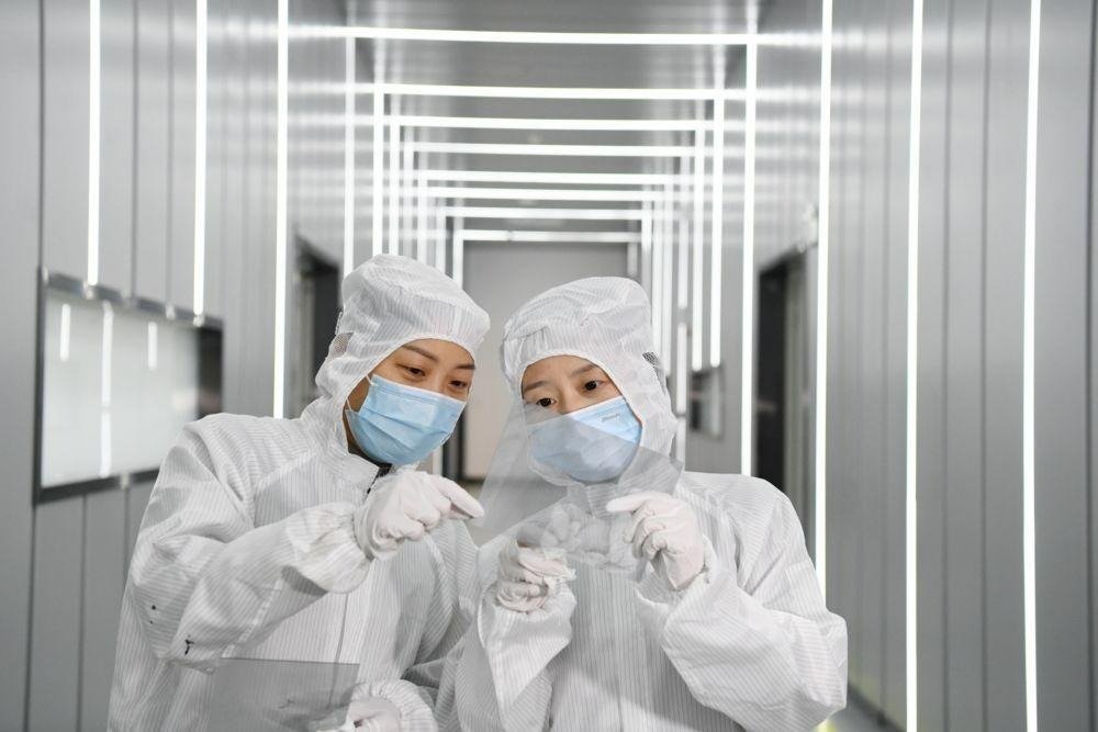 2024年2月21日,在位于安徽合肥的东超科技工厂,技术人员在检查负折射平板透镜原材料的品质。新华社记者 张端 摄