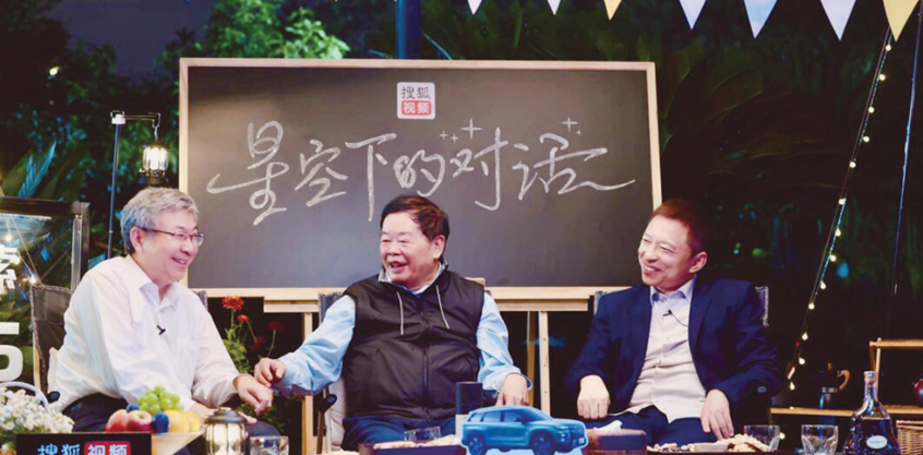 曹德旺与尹同跃(左)参加张朝阳(右)主持的节目《星空下的对话》
