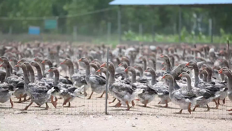 如今,灰白色的朗德鹅几乎已成为霍邱县大大小小养殖场标配,在当地农业部门引导下,孟集、花园等20多个乡镇,朗德鹅养殖与加工呈现出“五里一场、十里一企”的发展格局,当地养鹅大户还采用“公司+农户”模式,带动村民养殖朗德鹅并成立合作社,不仅为养殖户提供鹅苗、技术、培训、还回收成品鹅,解决村民后顾之忧。