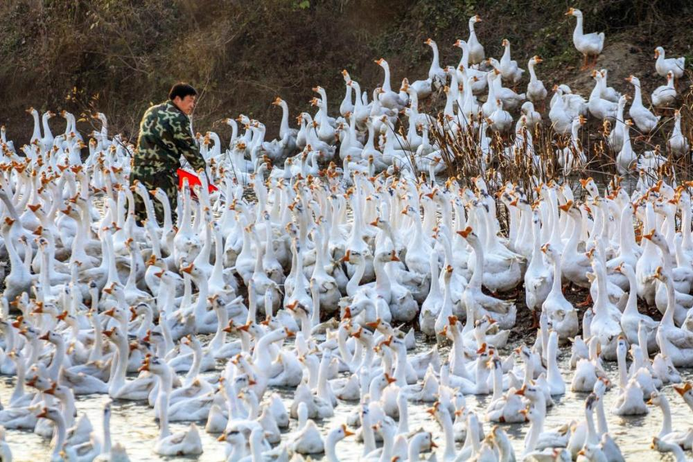 白鹅养殖。(资料图) 新华网发(张光照 摄)