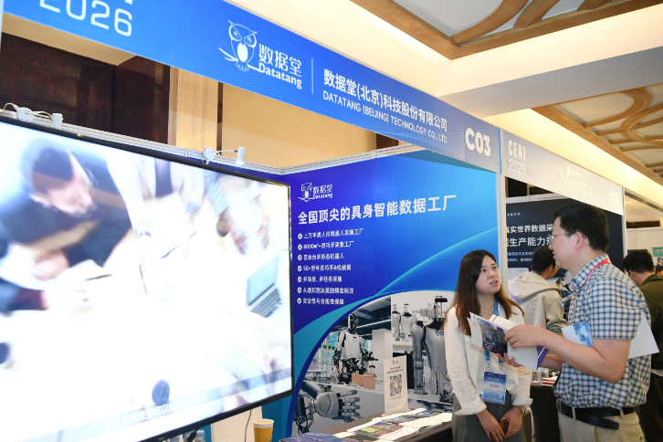 参会人员来到数据堂展区咨询洽谈。陈三虎 摄