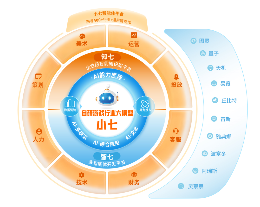 2025年,三七互娱自主研发的游戏行业大模型“小七”通过国家网信办备案。以此为底座,公司构建了覆盖市场分析、产品立项、美术设计、广告投放、运营分析等全链路的AI赋能体系。目前,“小七智能体平台”已接入各类大模型及AI工具超150个。